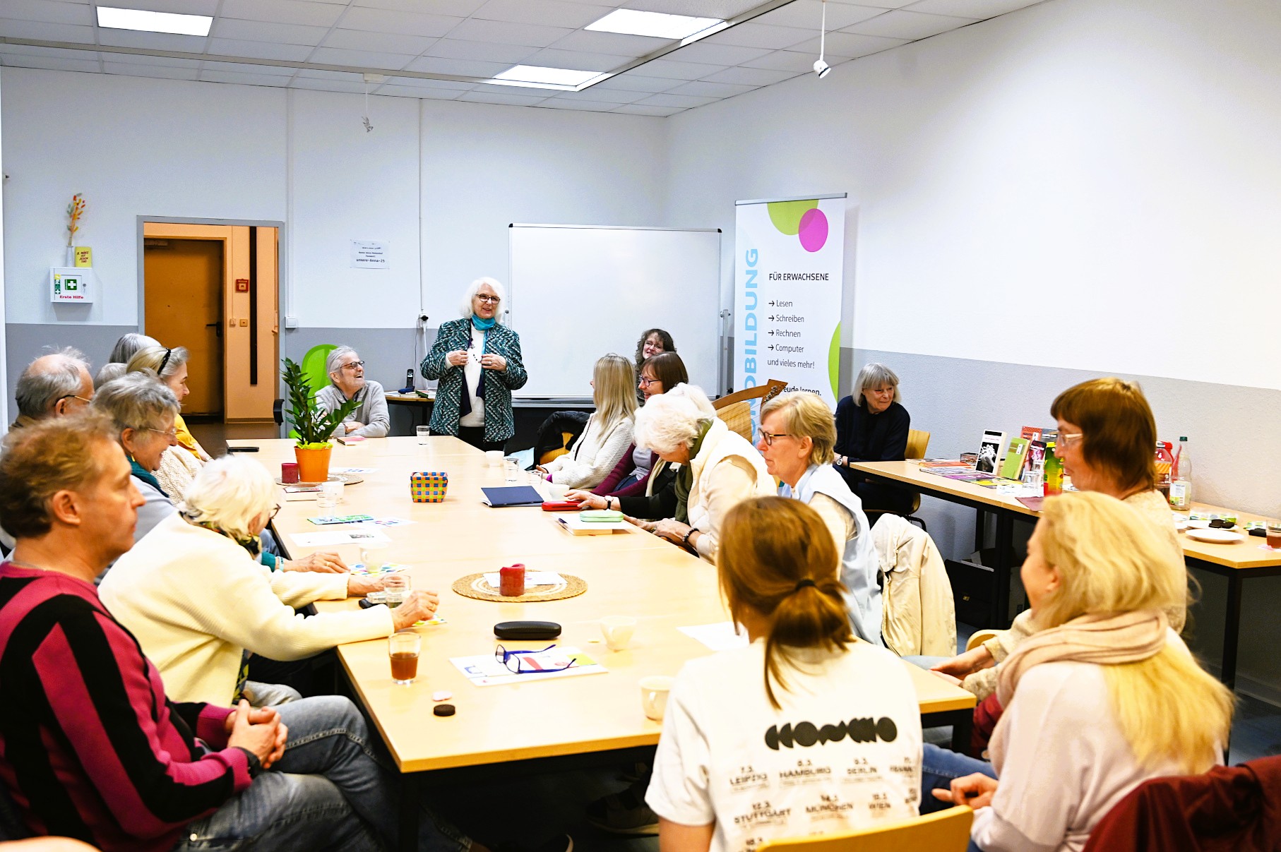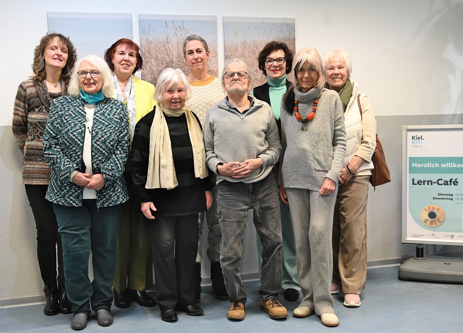 li. Simone Arnold, Christel Mirus-Bröer und Annika Polenski und die Aktiven von li. n. re. Christel Mirus-Bröer, Ursula Schark, Henning Schöttke, Gudrun Thomas-Feuker und die 2. Reihe: Simone Arnold, Katharina Fast, Birgit Marbs, Sibylle Hallberg und Elisabeth Albert.
