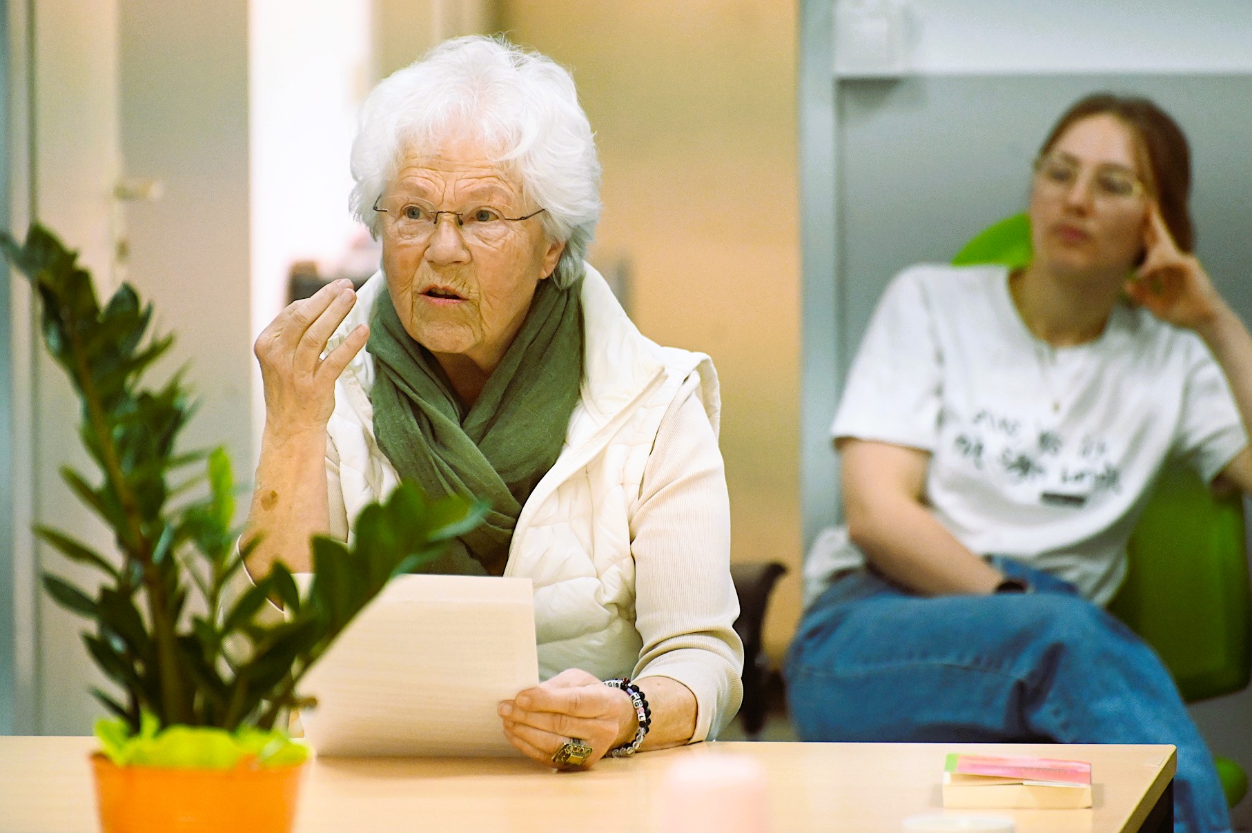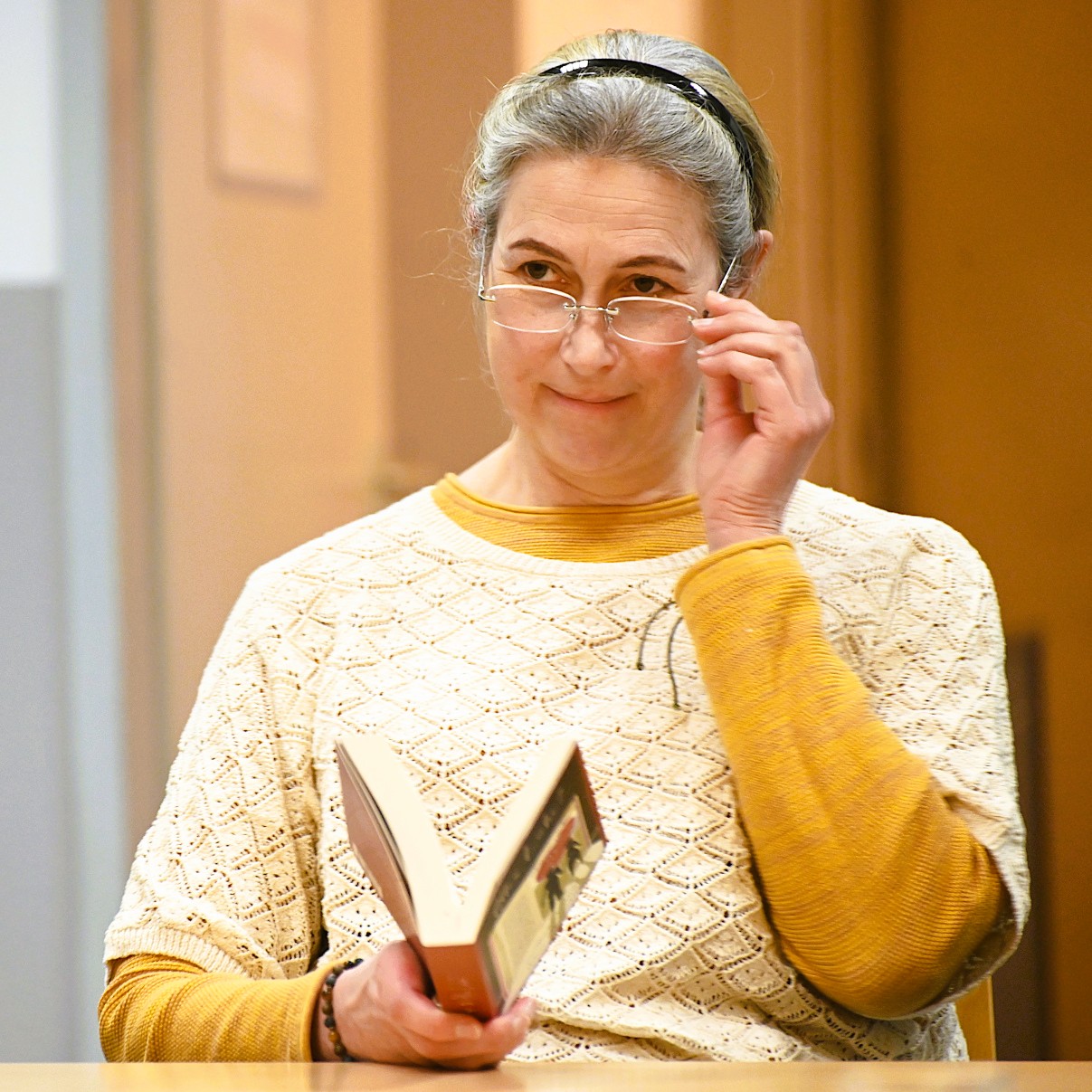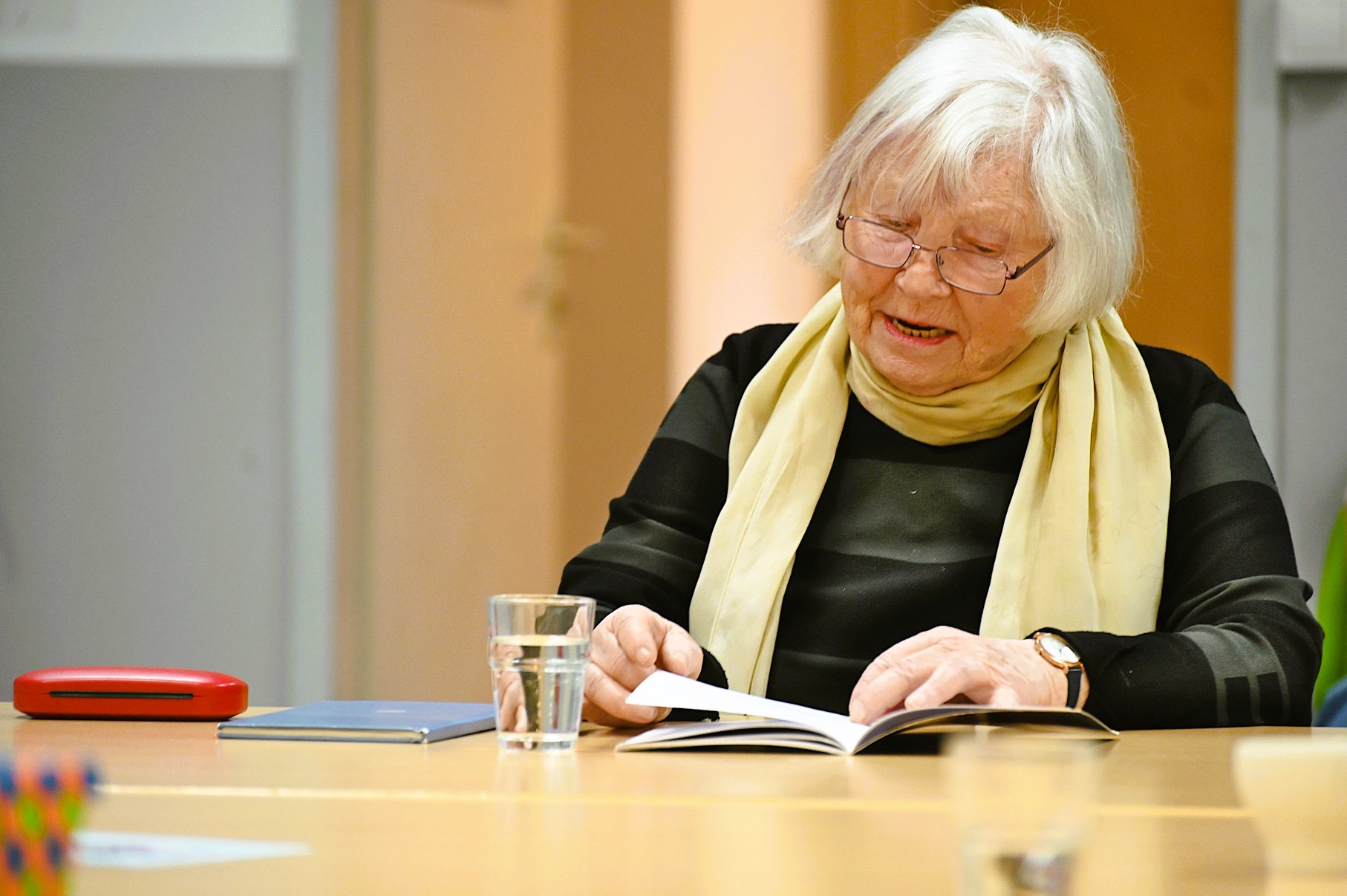 Dr. Elisabeth Albert las von einer Erkenntnis nach einer Augenoperation und wie sie bei einem Blick in den Spiegel die Helle und das Klare entdeckte. Über die Freude wieder deutlich und gut zu sehen, beeindruckte sie die Veränderung in ihrem Gesicht und die sichtbaren Zeichen des Älterwerdens.