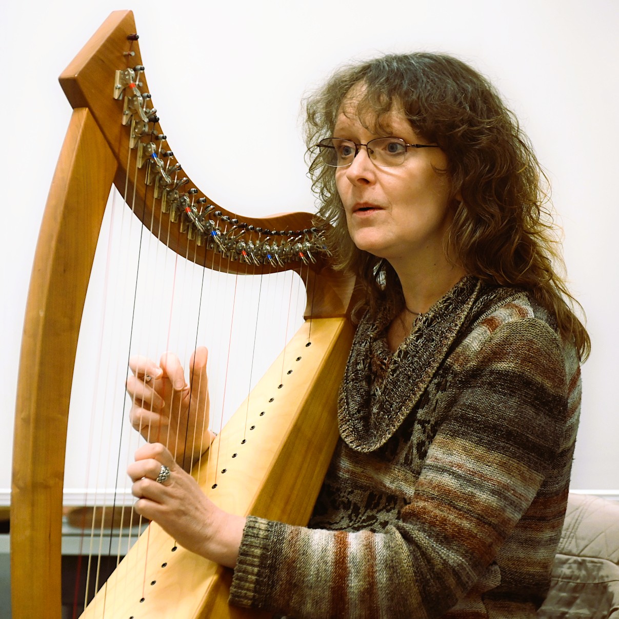 Mit ihrer Harfe und einer indianischen Flöte und deren neuartig klingenden Tönen untermalte Simone Arnold
